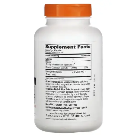 КОЛАГЕН + ВІТ.С DOCTOR'S BEST (тип 1 та 3) 500 мг №240 табл.