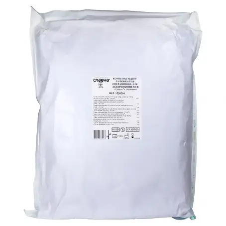 Комплект одежды и покрытий операционных для лапароскопии № 1/В согласно описанию состоит из таких составляющих как:- покрытие 160х300 см с абдоминальным адгезивным полем на дугу – 1 штука (материал СМС);