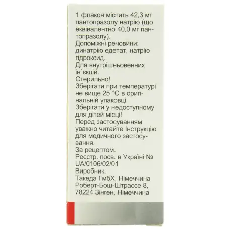 1 флакон содержит 42,3 мг пантопразола натрия (что эквивалентно 40,0 мг пантопразола);