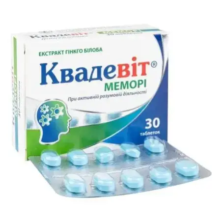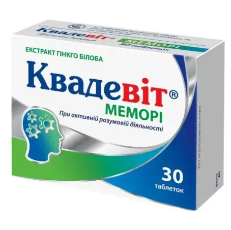 Квадевит® Мемори (Добавка диетическая) - как дополнительный источник витаминов, микроэлементов и экстракта гинкго билоба.