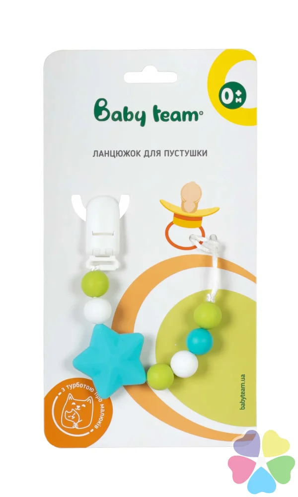 Цепочка для пустышки Baby Team силиконовая арт. 3390, 1 шт можно купить в наших аптеках сейчас здесь: Троещина, Охматдет, Черновола, Времена Года, Павловская, Дарницкая площадь, 6 больница, Крюковщина, Илая Фемили, Вистамед, Гмыри 18, Метрологическая 14Б, Ивасюка 4, ЖК Заречный, ЖК София, Оболонская набережная, Драгомирова, Больница №12, ЖК Яскравий, Шевченко, Барбюса 56, Палладина, Вита-Почтовая, Щербаковского 52, Ясиноватский 10, Respublika, Софиевская Борщаговка, Львов, Березневая, Comfort Town 3, Грінвіль, , Кургузова