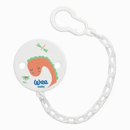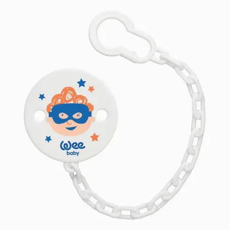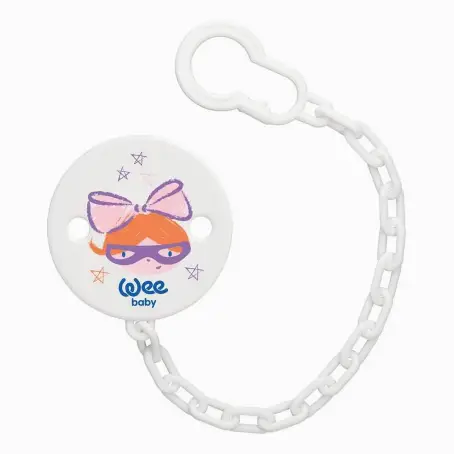 Чтобы любимая пустышка маленького ребенка не потерялась и всегда была в зоне доступности, понадобится специальное устройство - цепочка-держатель. Качественное изделие с рисунком от популярной торговой марки Wee Baby - отличный вариант для удобного использования любимого аксессуара.