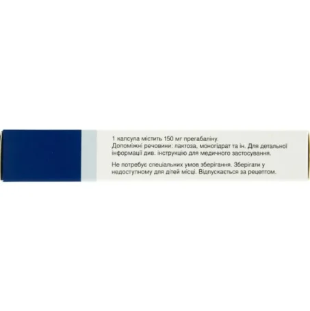 Капсулы по 150 мг: твердые непрозрачные (белые/белые) желатиновые капсулы размера 2, содержащие порошок белого или почти белого цвета. Отпечаток на корпусе «PGN 150», на крышечке - «Pfizer» черными чернилами.