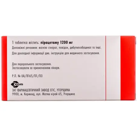 1 таблетка содержит 400 мг или 800 мг или 1200 мг пирацетама;