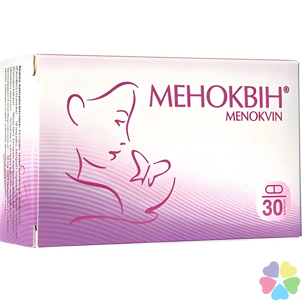 МЕНОКВИН содержит сбалансированный комплекс растительных гормоноподобных (эстрогенных и прогестагенных) веществ, стимулирующих синтез собственных половых гормонов, что способствует предупреждению и уменьшению климактерических расстройств.