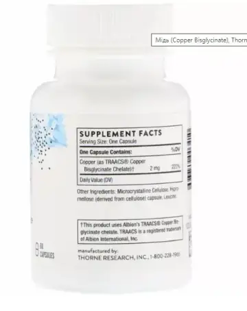 Биодобавка Медь (Copper Bisglycinate) Thorne Research от американского производителя - надежный помощник в поддержке вашего здоровья!
