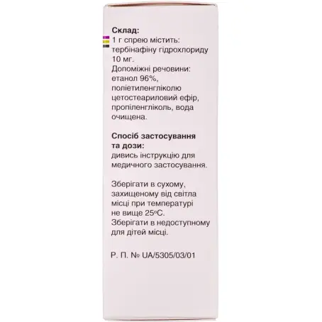 1 г спрея содержит гидрохлорида тербинафина 10 мг;