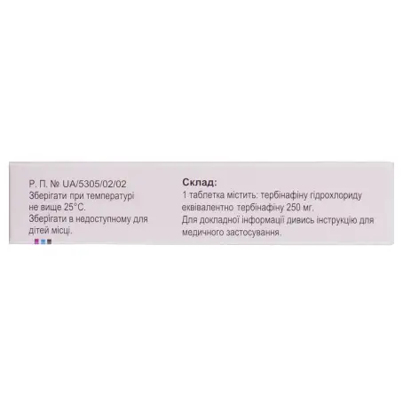 Известно несколько случаев передозировки (прием внутрь до 5 г тербинафина). При этом отмечались головная боль, тошнота, боль в эпигастрии и головокружении.