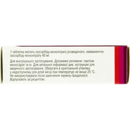 1 таблетка содержит изосорбида мононитрата разбавленного эквивалентно изосорбиду мононитрата 20 мг или 40 мг;