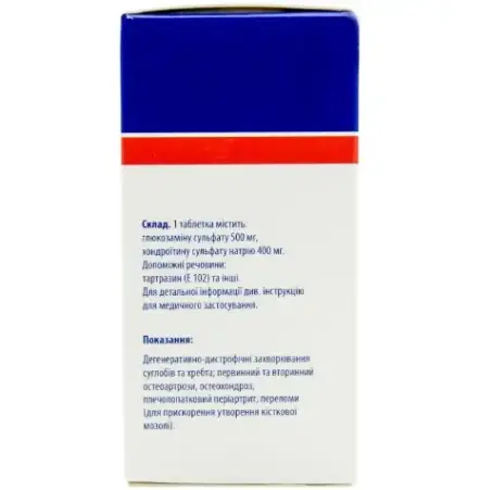 1 таблетка содержит глюкозамина сульфата 500 мг, хондроитина сульфата натрия 400 мг;