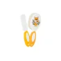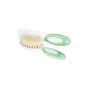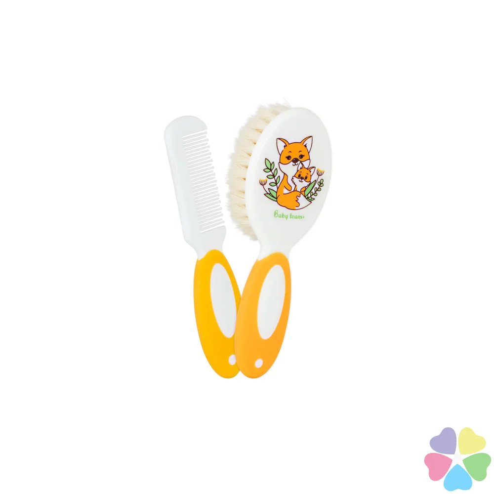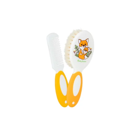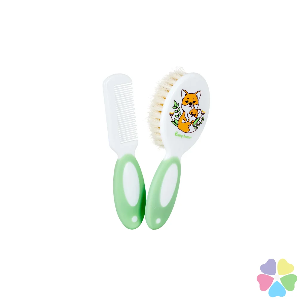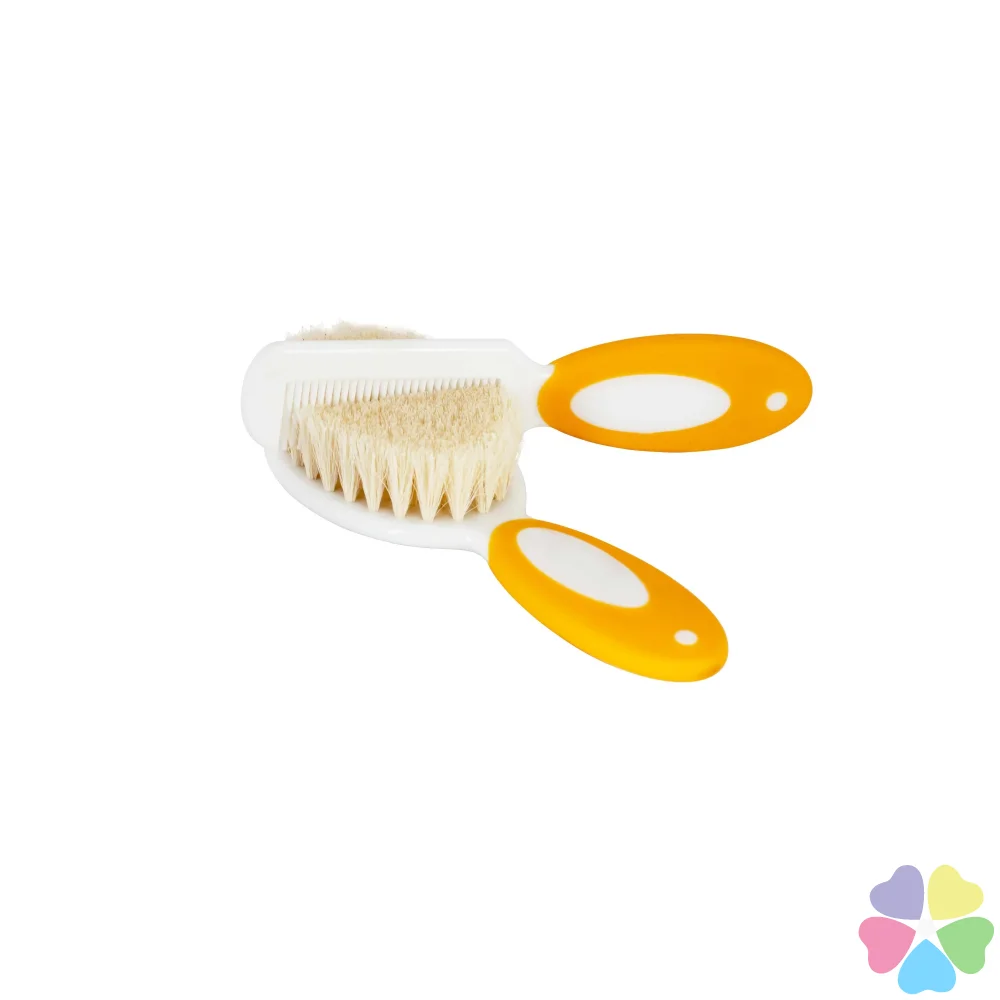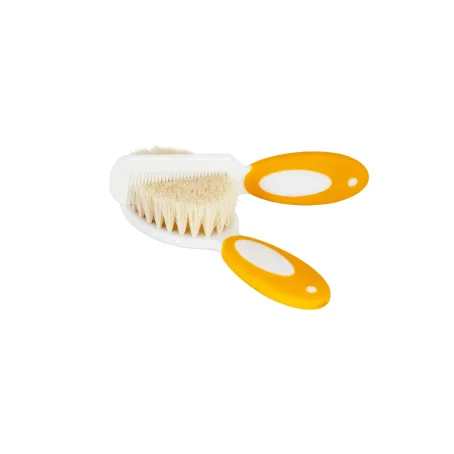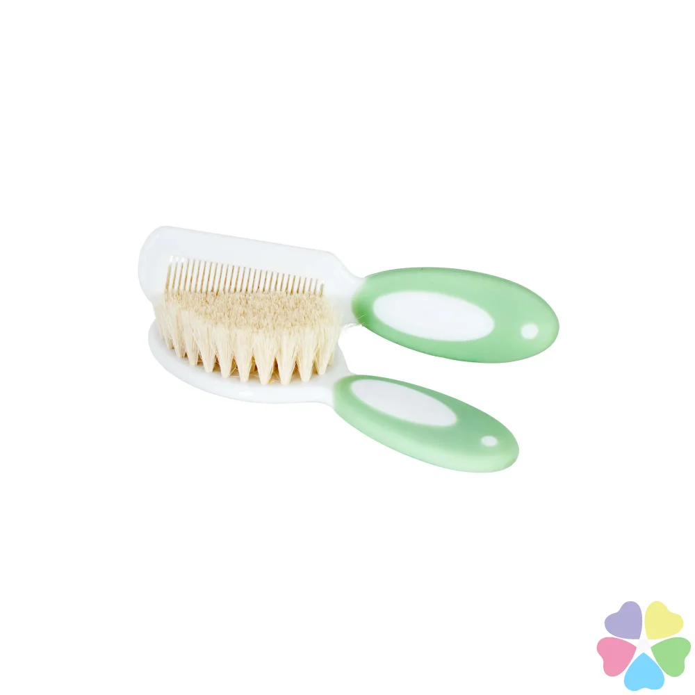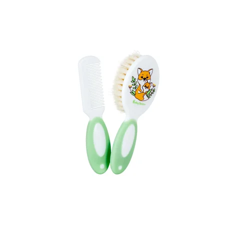 Расческа и щетка позволят вам аккуратно расчесывать волосы ребенка. Щетка с натуральной мягкой щетиной идеально подходит для нежной кожи головы ребенка, а расческа бережно расчесывает волосы. Оба предмета имеют удобные ручки.