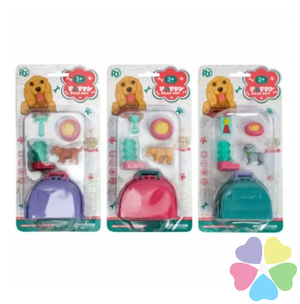 Описание- В игровой набор с щенком и аксессуарами входит щенок, поильник-кормушка (2 элемента), миска, аксессуар, переноска-лежанка.