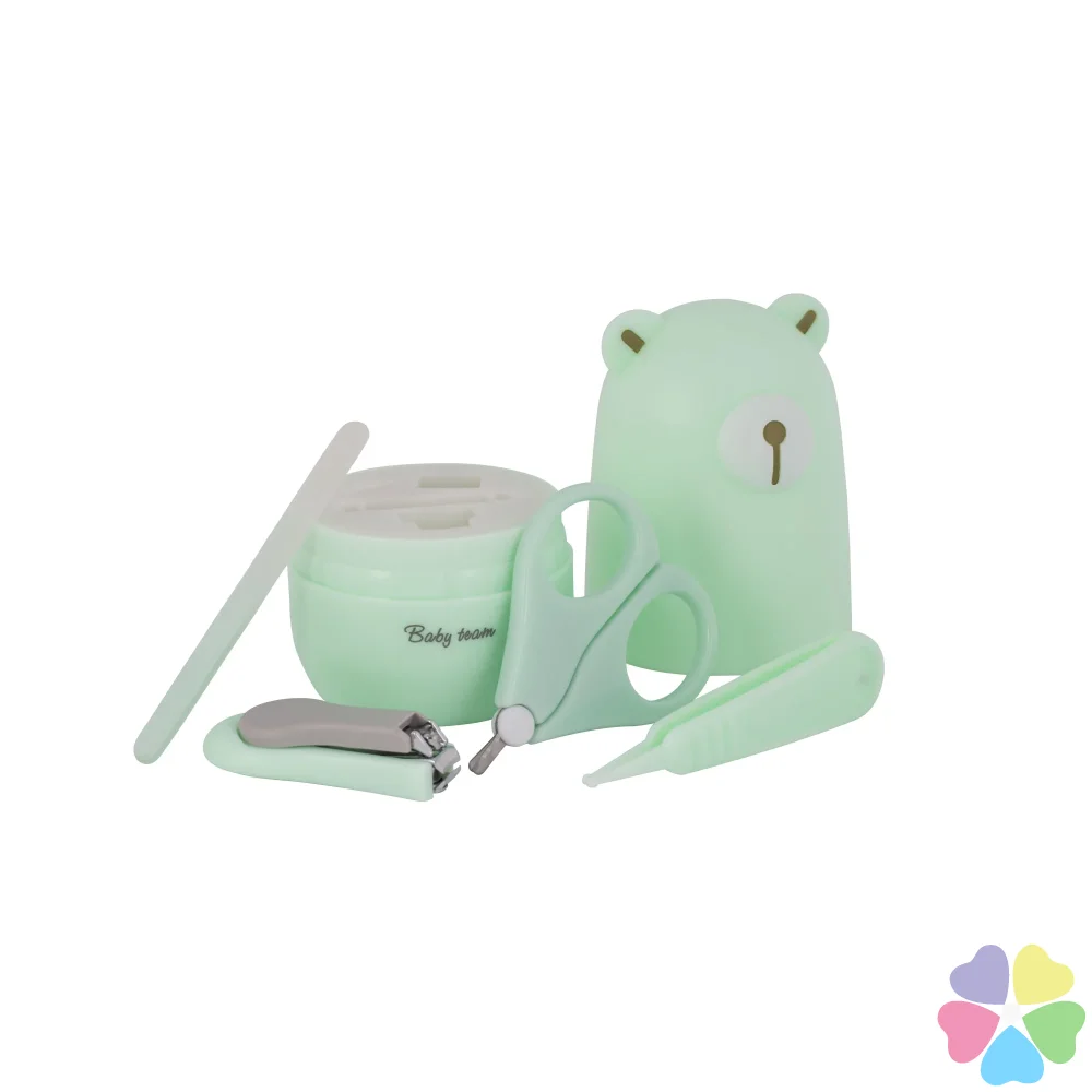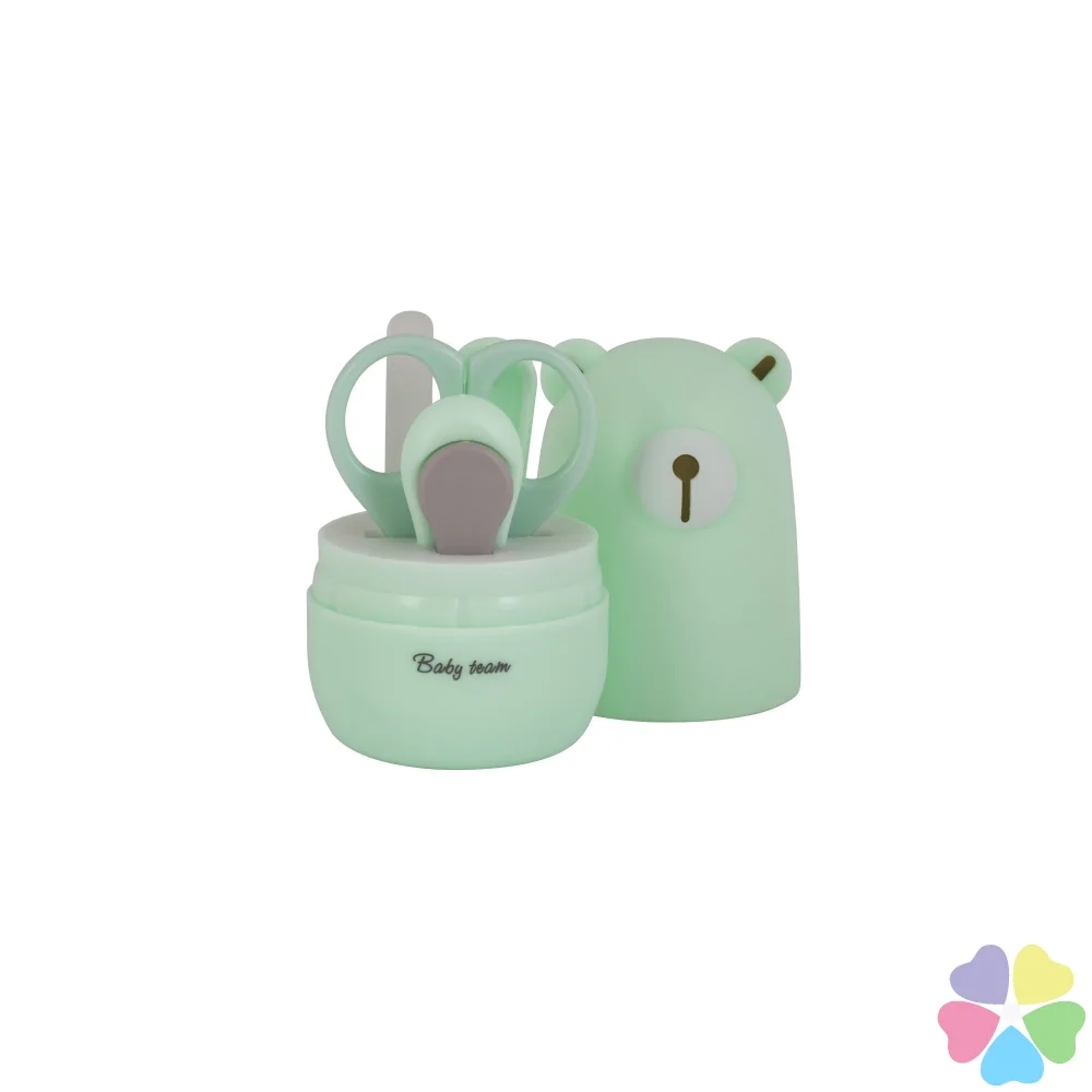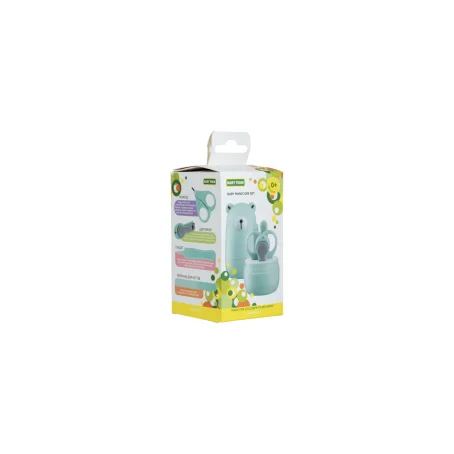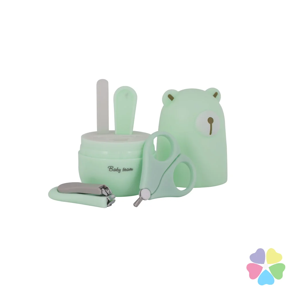 Набор маникюрный содержит: Ножницы из нержавеющей стали, имеющие лезвия с закругленными концами для максимальной безопасности, щипчики для ногтей с антискользящей ручкой, стеклянную пилочку, мягко подпиливающую ногти ребенок и пинцет с антискользящей поверхностью. Все предметы легко складываются в контейнер для удобного хранения, который можно брать с собой в дорогу.