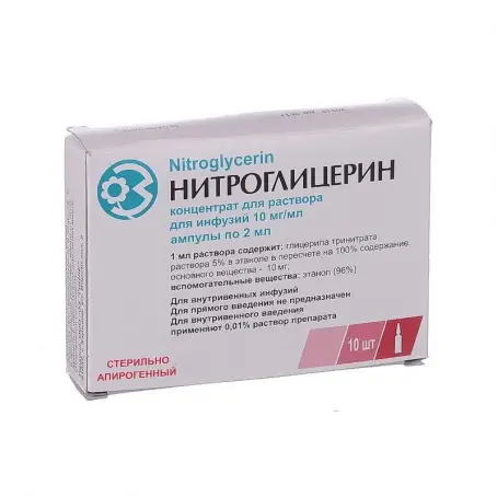 НИТРОГЛИЦЕРИН 1% 2 мл N10 конц. для инф. амп.