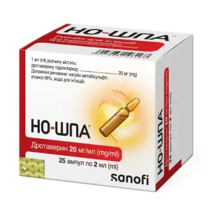 1 мл раствора содержит гидротаверина гидрохлорида 20 мг;