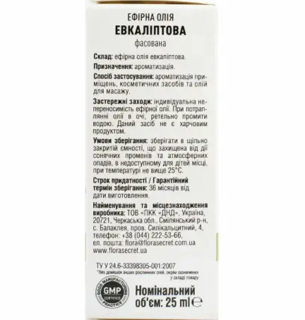 Масло эфирное Flora Secret эвкалиптовое 25 мл можно купить в наших аптеках сейчас здесь: Оксиден, Милославская, Павловская, Святослава Храброго 7, Народного Ополчения 7, Софиевская Борщаговка, Эрнста 16Б, Старонаводницкая, Франка 6, Пчелки, Семьи Кульженко, ЖК Яскравий, Крюковщина, Еврогород, Франка, Соломенка, Гатное, Одесская, Мазепи, Blockbuster, Европейская, Кульпарковская, Воскресенская