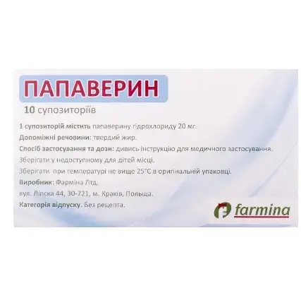 1 суппозиторий содержит папаверина гидрохлорида 20 мг