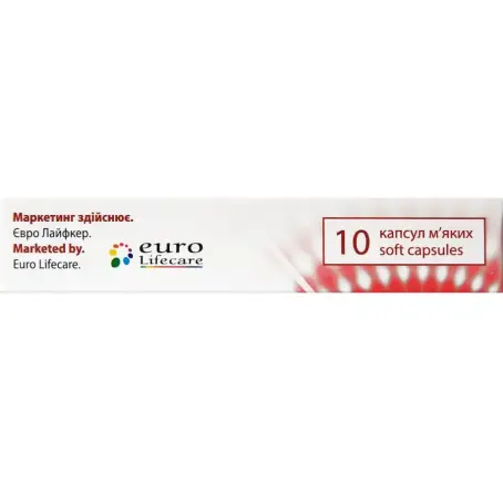 Основные физико-химические свойства: белого цвета непрозрачная овальной формы мягкая желатиновая капсула, содержащая суспензию от почти белого до белого цвета.
