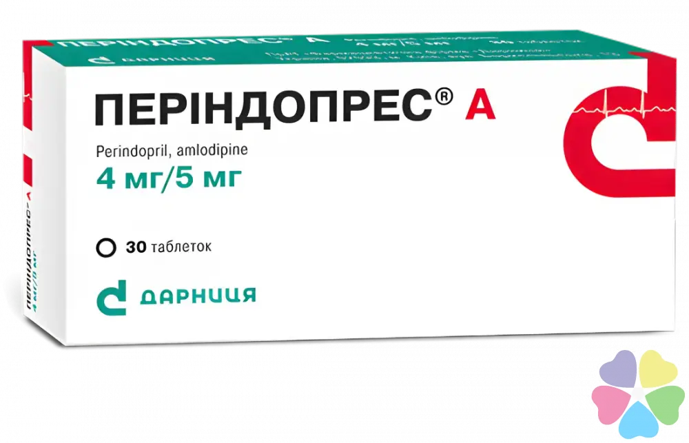 Артериальная гипертензия и/или ишемическая болезнь сердца (если необходимо лечение периндоприлом и амлодипином).