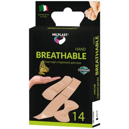 Набор пластырей бактерицидных Milplast BREATHABLE Hand для рук, стерильные, 14 шт можно купить в наших аптеках сейчас здесь: Зверинецкая, Подвысоцкого, Петропавловская Борщаговка, Щасливый, Вистамед, Гмыри 18, возле Позняков, Эпицентр, Ирпень, Университетская, Карат, Дарница, Алматинская, Гатное, Чабани, Одесская, Вишневое, Европейская, Воскресенская