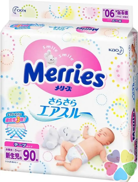 ПОДГУЗ MERRIES ДЛЯ НОВОРОЖДЕННЫХ 5КГ №90