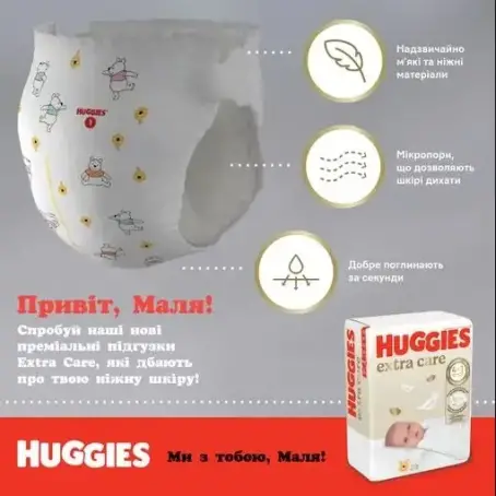 Подгузники Huggies заботятся о нежной коже малыша в эти важные первые месяцы жизни, они подходят как для мальчика, так и для девочки. В каждой упаковке вы найдете уникальные яркие дизайны Disney с героями мультфильмов о Винни Пухе.
