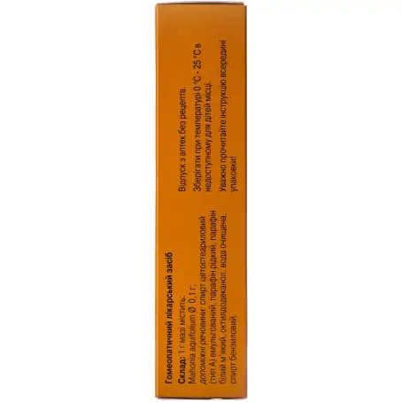 действующее вещество: 1 г мази содержит Mahonia aquifolium Ø 0,1 г; другие составляющие: спирт цетостеариловый (тип А) эмульгированный, парафин жидкий, парафин белый мягкий, октилдодеканол, вода очищенная, спирт бензиловый.