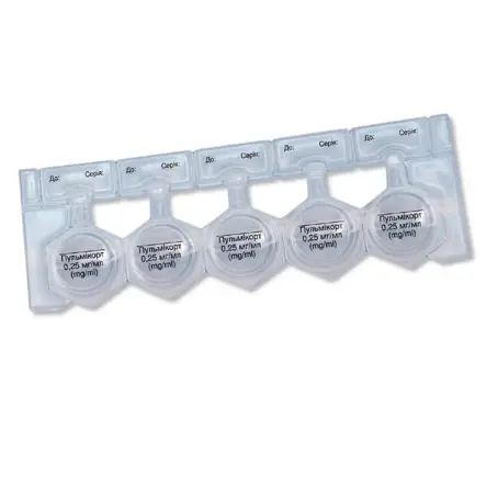 1 мл суспензии для распыления содержит 0,25 мг или 0,5 мг будесонида;