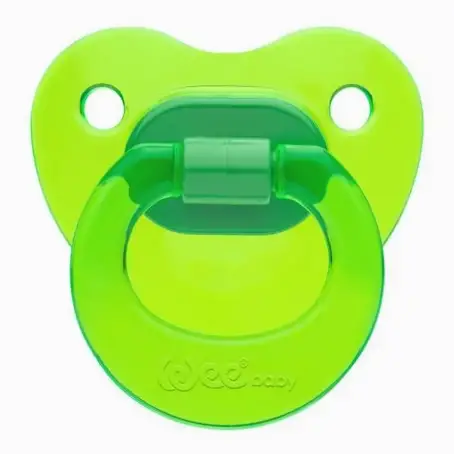 Система Wee Air обеспечивает вход и выход из пустышки , что позволяет исключить слипание и сохранить мягкую форму кончика пустышки .