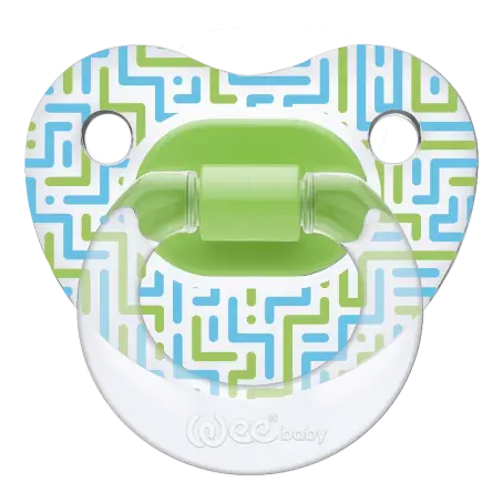 Система Wee Air обеспечивает вход и выход воздуха из пустышки , что позволяет исключить слипание и сохранить мягкую форму кончика пустышки .