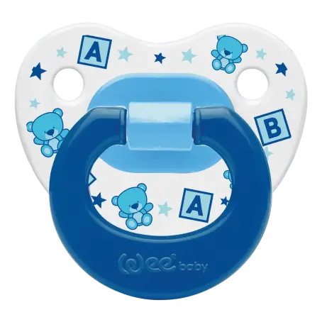 Система Wee Air обеспечивает вход и выход воздуха из пустышки , что позволяет исключить слипание и сохранить мягкую форму кончика пустышки .