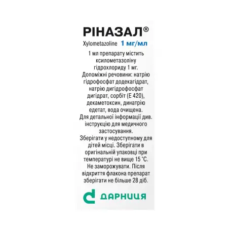 1 мл препарата содержит гидрохлорида ксилометазолина 1 мг;