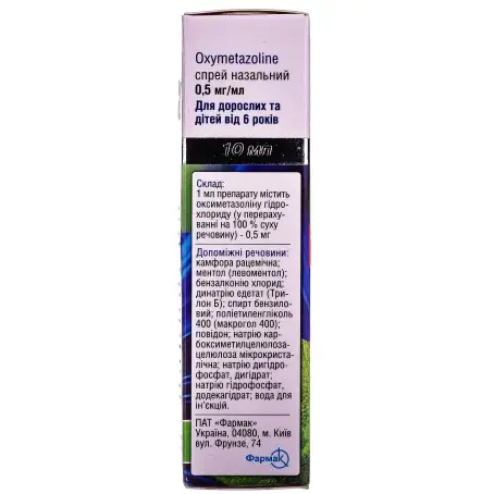 1 мл препарата содержит гидрохлорид оксиметазолина 0,5 мг в пересчете на 100% сухое вещество;