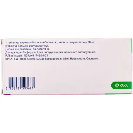 действующее вещество: 1 таблетка, покрытая пленочной оболочкой, содержащая 5 мг или 10 мг, или 15 мг, или 20 мг, или 30 мг, или 40 мг розувастатина (в виде кальция розувастатина);