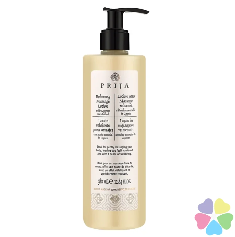 Лосьон для массажа расслабляющий Prija с эфирным маслом кипариса, 380 мл можно купить в наших аптеках сейчас здесь: Драгомирова 14, Новопечерские Липки, 6 больница, ЖК Заречный, Заречная, Драгомирова, Верхогляда, Новые Липки, Больница №12, Respublika, Respublika-2, Рыльского, Маккейна, Французский квартал-2, Софиевская Борщаговка, Героев Небесной Сотни, Уютный, Сфера, Садовая, Березневая, Соцгород, Комфорт Таун 3, Comfort Town 3, Печерский, Драгомирова, Липки, Парк Авеню