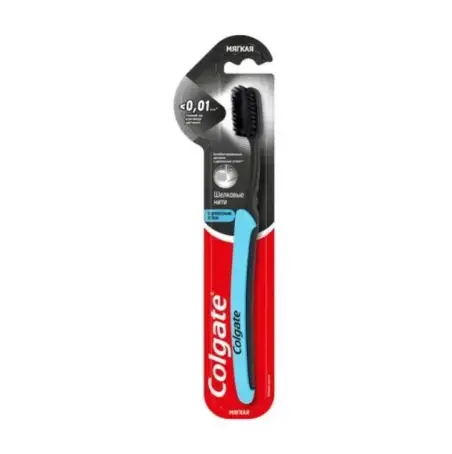 Единственная зубная щетка Colgate с черными ультратонкими щетинками, которые содержат древесный уголь. Щетинки с древесным углем способствуют очищению бактерий, образующих зубной налет.