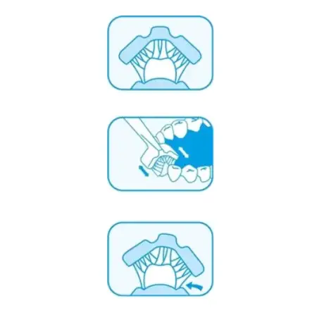 - Направляет сама себя вдоль зубного ряда, так как щетинки охватывают зуб со всех сторон