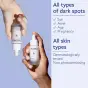Эта сыворотка эффективно и при этом очень бережно выравнивает тон кожи, устраняет пигментные пятна и предотвращает их появление, придавая коже сияние. Она действует на все типы пигментных пятен (вызвано солнечными лучами, акне, беременностью и возрастными изменениями) и подходит для всех типов кожи, даже для очень чувствительной.