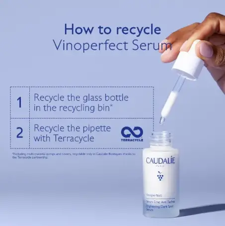 *Исключение составляют помпы и крышки, выполненные из нескольких материалов и сдаваемые для переработки исключительно в магазины-салоны Boutiques SPA Caudalie при поддержке компании Terracyle.