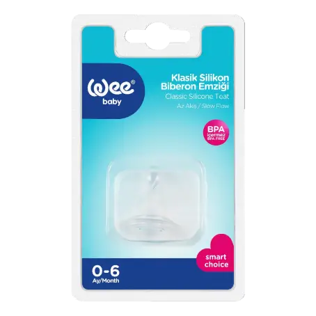 Для детей до шести месяцев прекрасно подойдет «Круглая соска для бутылочек с узким горлышком №1» от производителя Wee Baby.