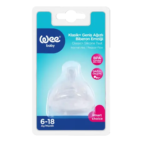 - Для детей от шести до восемнадцати месяцев прекрасно подойдет «Круглая соска для бутылочек с широким горлышком №2» от производителя Wee Baby.