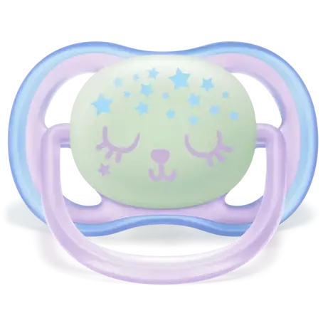 С помощью подсветки Вы можете найти пустышку ultra air ребенка, не включая свет.