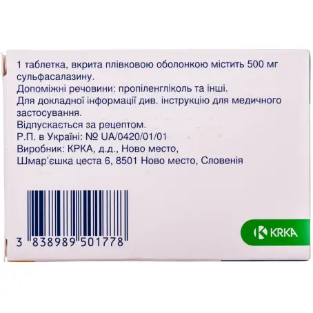 Язвенный колит.Пациенты с язвенным колитом должны знать, что язвенный колит редко исчезает полностью, а риск возникновения обострения может существенно снижаться после длительного применения Сульфасалазина в поддерживающей дозе.