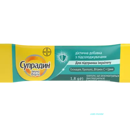 Диетическая добавка Супрадин® Иммуно Форте (рассасывающиеся (диспергируемые) гранулы в полости рта, в саше массой 1,8 g (г)). Не лекарственное средство!