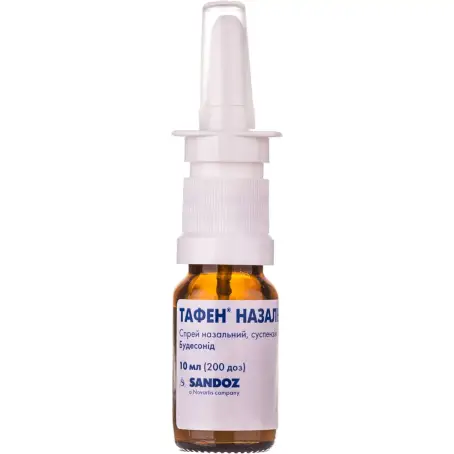 Случайная передозировка будесонида не приводит к возникновению явных клинических симптомов. Возникновение острой передозировки маловероятно. При длительном применении, введении высоких доз или одновременном применении с другими ГКС будесонид может повлечь за собой появление системных побочных эффектов, таких как недостаточность функции надпочечников и гиперкортицизм. Доказано, что динатрия эдетата приводит к сужению бронхов, если его уровень превышает 1,2 мг/мл. Препарат Тафен Назаль содержит в качестве вспомогательного вещества 0,1 мг/мл динатрия эдетата.