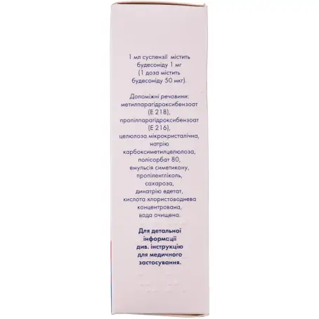 1 мл суспензии содержит будесонид 1 мг (1 доза содержит будесонид 50 мкг);