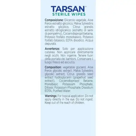Стерильные одноразовые салфетки Тарсан не содержат ароматизаторов, которые могут вызвать аллергические реакции чувствительной кожи, обеспечивают мягкое очищение и удаление слизистых выделений и сухих или жирных чешуек, накапливающихся на краях век. Продукт обеспечивает нежную и освежающую очистку, а также нормализует бактериальную флору кожи, это может прогрессивно тормозить превращение выделений. Стерильные одноразовые салфетки Тарсан могут использовать как взрослые, так и дети.