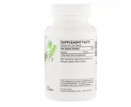 Таурин Taurine Thorne Research, 500мг, 90 капсул - эффективная биодобавка в удобной упаковке, рассчитанной минимум на месяц приема.