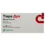 Валсартон. После применения внутри лекарственного средства всасывание валсартана и гидрохлоротиазида происходит быстро, однако степень всасывания варьирует в широких пределах. Средняя величина абсолютной биодоступности лекарственного средства Тиара Дуо составляет 23%. Фармакокинетическая кривая валсартана носит восточный мультиэкспоненциальный характер (t1/2α < 1 час и t1/2β почти 9 часов). В диапазоне изученных доз кинетика валсартана носит линейный характер. При повторном применении лекарственного средства изменения кинетических показателей не отмечалось. При приеме лекарственного средства 1 раз в сутки кумуляция незначительна. Концентрации лекарственного средства в плазме крови у женщин и мужчин были одинаковыми. Валсартан в значительной степени связывается с белками сыворотки крови (94-97%), преимущественно с альбумином. Объем распределения в период равновесного состояния низкий (~17 л). По сравнению с печеночным кровотоком (~30 л/ч) плазменный клиренс валсартана происходит относительно медленно (~2 л/ч). Количество валсартана, выводимого с калом, составляет 70% (от величины, принятой внутрь дозы), а почти 30% выводится с мочой, преимущественно в неизмененном виде.