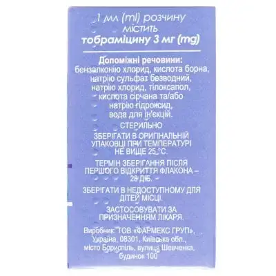 ТОБРАМІЦИН-ФАРМЕКС 3 мг/мл 5 мл краплі оч. фл.-крап.